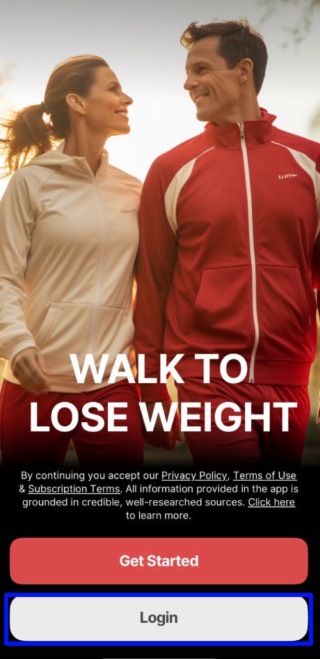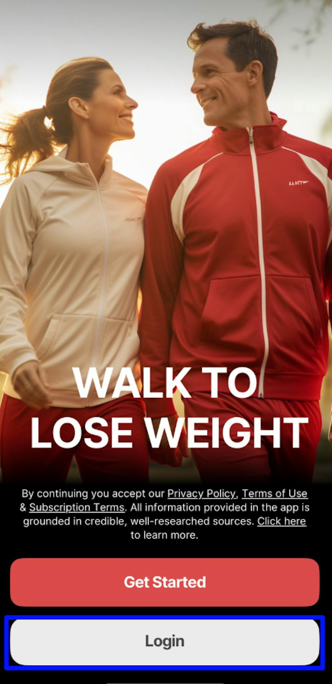 If your operating system is Android,tap here to download the app on the Google Play. - Open the app and tap the Login button on the app’s opening screen as shown below: