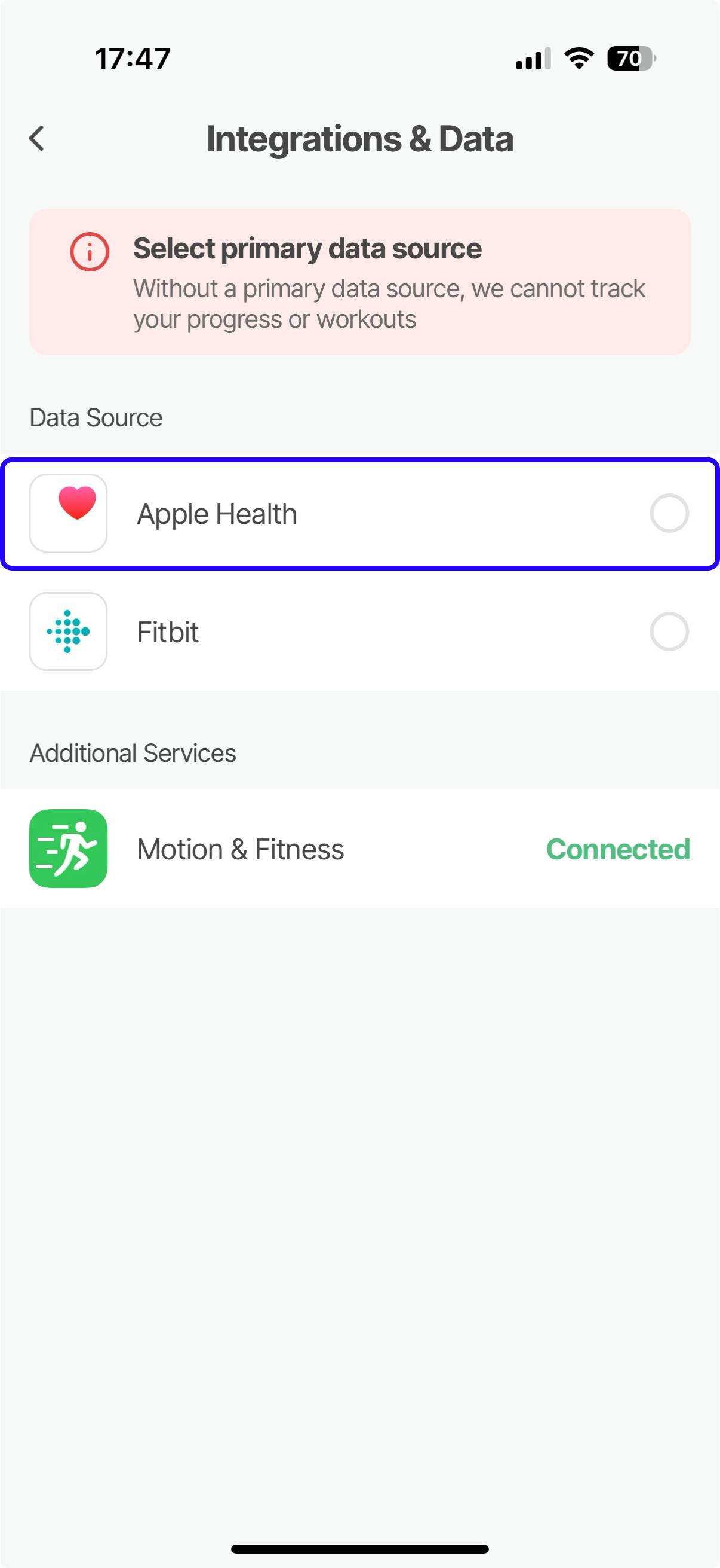 Check if you have the latest version of the app and if WalkFit is synced with Apple Health, as shown in the instructions below: